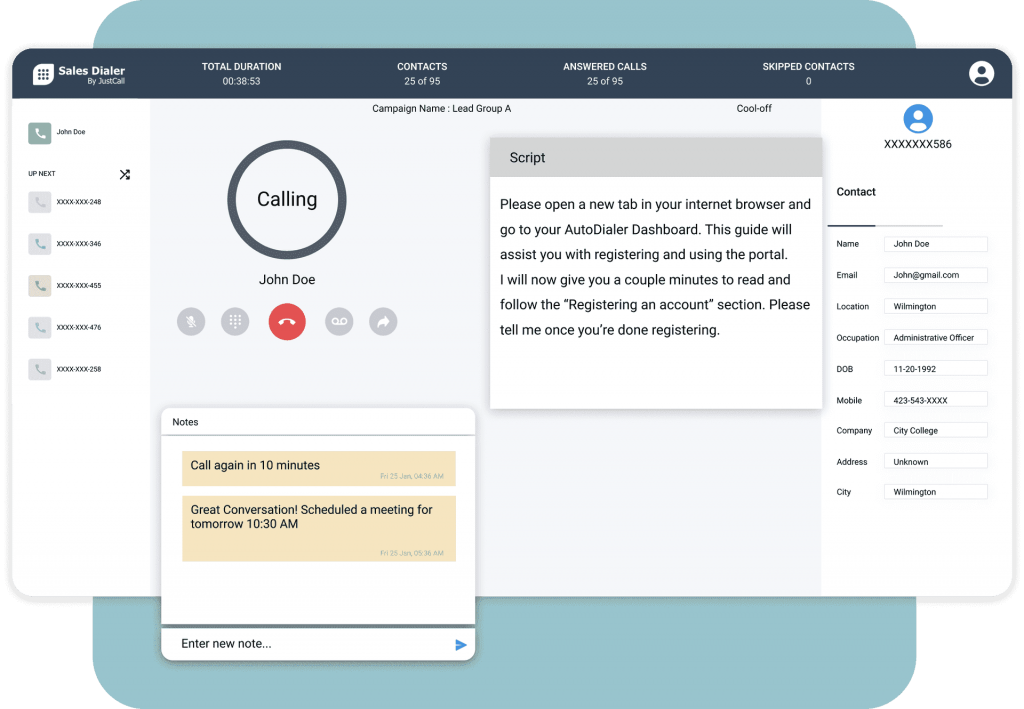 Our Sales dialers come loaded with numerous useful features that will make your agent’s job super easy. Read call scripts during the calls, take notes, tag contacts or even leave ratings after the call.